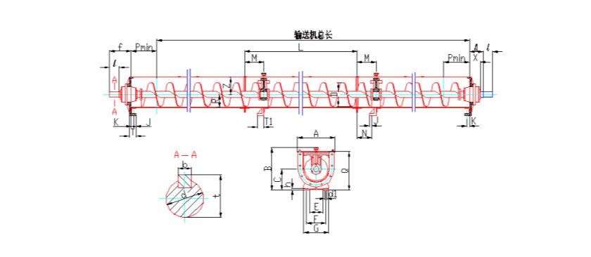 沙子螺旋輸送機(jī)主要由頭部軸承、尾部軸承、驅(qū)動(dòng)裝置、螺旋、機(jī)殼、蓋板及底座組成,驅(qū)動(dòng)裝置是由電機(jī)、減速機(jī)、聯(lián)軸器等部件組成的。