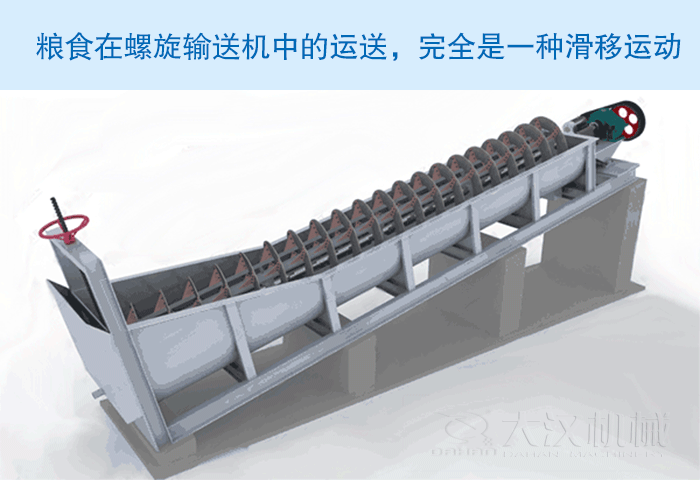 糧食螺旋輸送機(jī)是利用旋轉(zhuǎn)的螺旋葉片將糧食推移而進(jìn)行輸送,使物料與螺旋葉片一起旋轉(zhuǎn)的力是物料自身重量和螺旋輸送機(jī)機(jī)殼對(duì)物料的摩擦阻力。糧食在中間軸承的運(yùn)移,則是依靠后面前進(jìn)著的物料的推力。所以,糧食在螺旋輸送機(jī)中的運(yùn)送,完全是一種滑移運(yùn)動(dòng)。