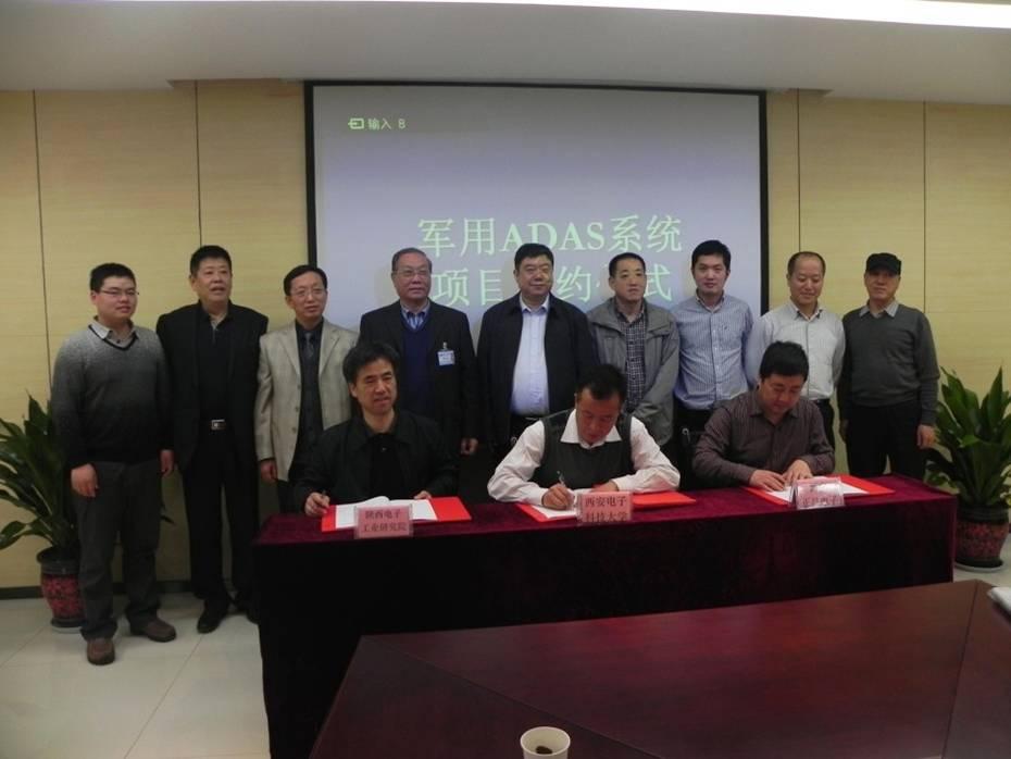 點擊量:905今年,在陜西電子工業研究院隆重舉行了我公司與該院及西安電子科技大學合作研發項目《軍用車輛ADAS系統》的簽約儀 式。 出席簽約儀式的有西安電子科技大學副校長兼陜西電子工業研究院理事長楊銀堂、陜西電子工業研究院院長白曉軍、西安電子科技大學通信工程學院黨委書記王躍利、西安電子科技大學科研院副處長張都應、西...